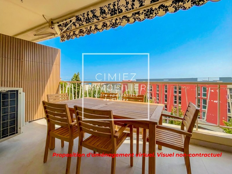 NICE CIMIEZ : Au sein d'une résidence sécurisée avec gardien, 3 pièces en dernier étage traversant magnifiquement rénové, lumineux au calme absolu.